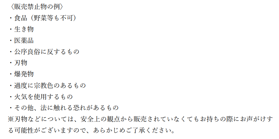 フリーマーケット参加に際する諸注意
